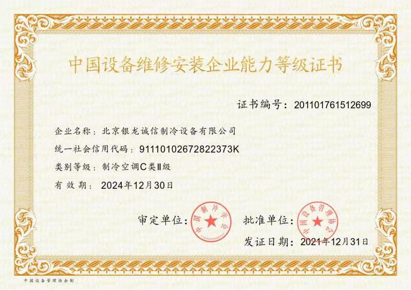 2007年:獲準(zhǔn)成為北京市制冷行業(yè)技術(shù)學(xué)會(huì)理事單位; 2009年:獲得北京市大興區(qū)百強(qiáng)企業(yè)認(rèn)證; 2009年:獲得國家高新技術(shù)企業(yè)認(rèn)證; 2011年:獲北京市安全生產(chǎn)先進(jìn)企業(yè)稱號(hào),節(jié)能環(huán)保先進(jìn)單位; 2012年:通過了國家高新技術(shù)企業(yè)復(fù)審; 2013年:公司董事長獲"2013北京先進(jìn)企業(yè)家"榮譽(yù)稱號(hào); 2014年:獲2014年度中國冷庫工程安裝設(shè)計(jì)造價(jià)行業(yè)十大品牌;